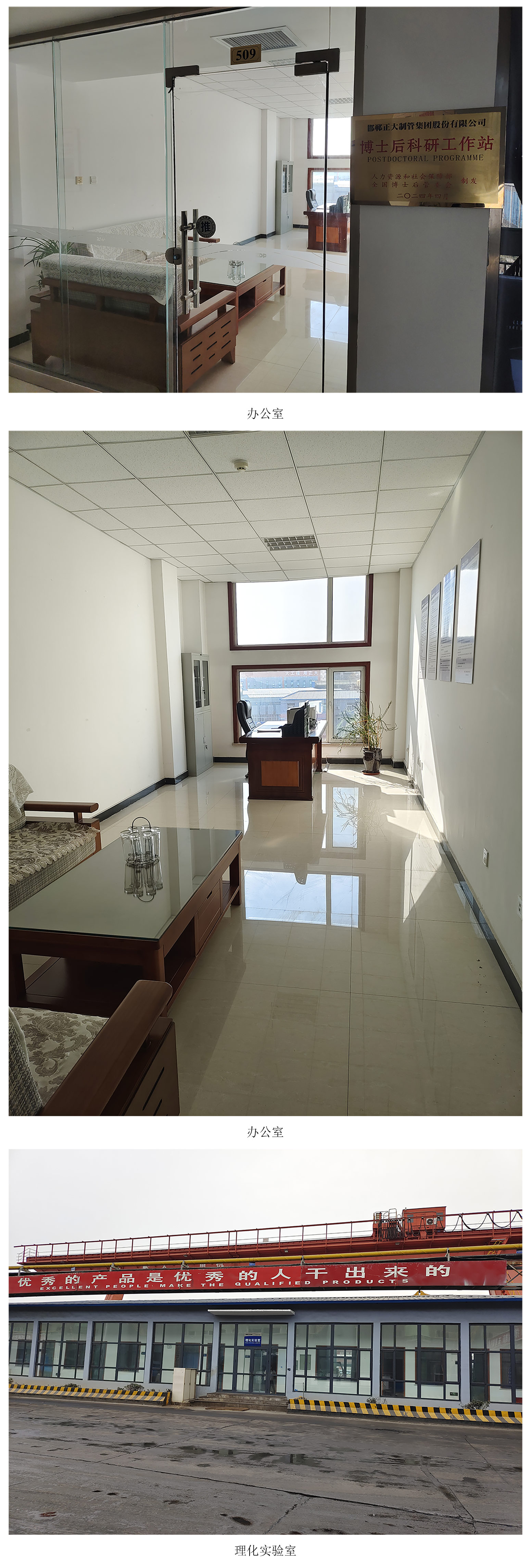 邯鄲正大制管集團股份有限公司博士后科研工作站于2024年4月批復設立,公司擁有研發、辦公用房5000m2,國家級CNAS理化實驗室,研發配套儀器設備140余臺。可以為研究人員提供直讀光譜儀、萬能試驗機、ICP光譜儀、半自動沖擊試驗機、沖擊試驗低溫儀、沖擊試樣缺口液壓拉床、夏比投影儀、金相分析儀、落錘撕裂沖擊試驗機、鋼管彎曲機、便攜式超聲波探傷儀等實驗儀器。可以為研究人員提供獨立辦公室及辦公用品,提供理化實驗室進行小試。博士后科研工作站為博士人才提供科學研究、項目申報、技術交流等服務,有助于他們更好地開展科研工作和職業發展。